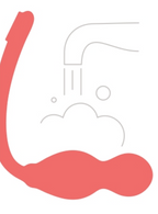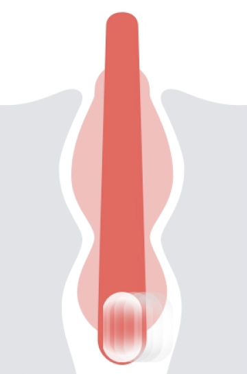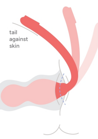 Without turning it on, insert Pelvic Partner until the comfort ring sits at the vaginal entrance. The tail remains outside the body. Fold the tail against your skin with the button up.
